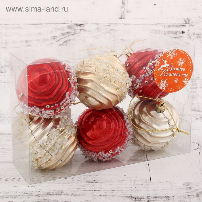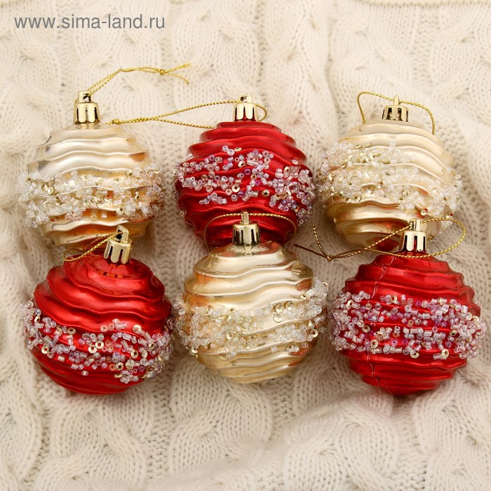 Sima-Land: Н-р шаров Волна бисер d-6см. 6шт. (красн-золот.)