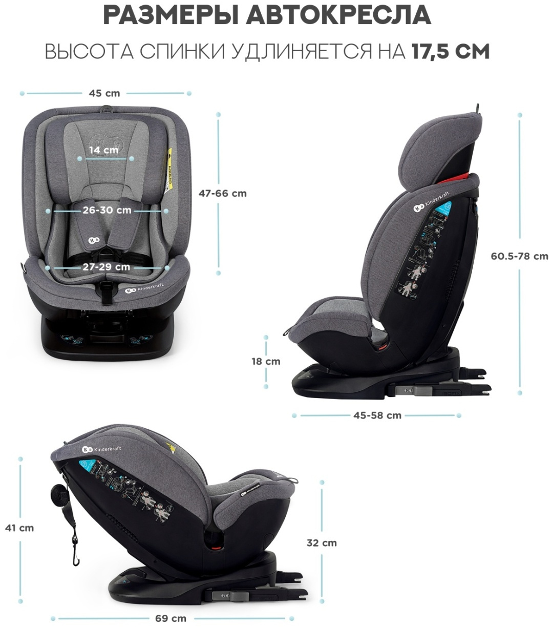Основание устанавливается только один раз – достаточно один раз установить автокресло в салоне автомобиля, а затем уже регулировать его в соответствии с возрастной категорией. Прошло испытание тщательными краш-тестами в известном голландском институте TASS INTERNATIONAL. Материалы, используемые при изготовлении автокресла, протестированы известным институтом INTERTEK, поэтому можете быть уверены, что они безопасны для детей всех возрастов.