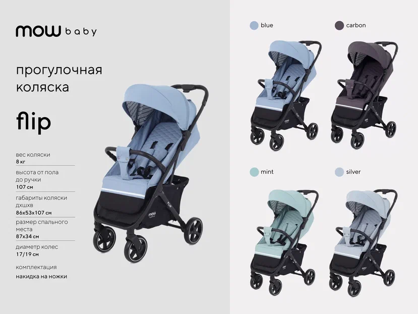Коляска прогулочная MOWBaby Flip(Blue) Рант