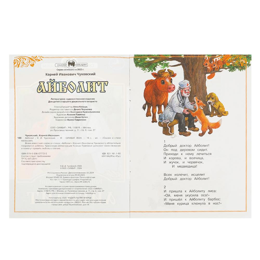Книга К. И. Чуковский. Сказки малышам. Айболит Умка От 3 лет