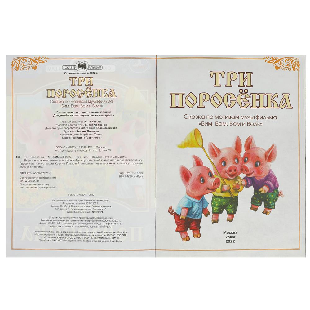Книга Сказки малышам. Три поросёнка Умка От 3 лет